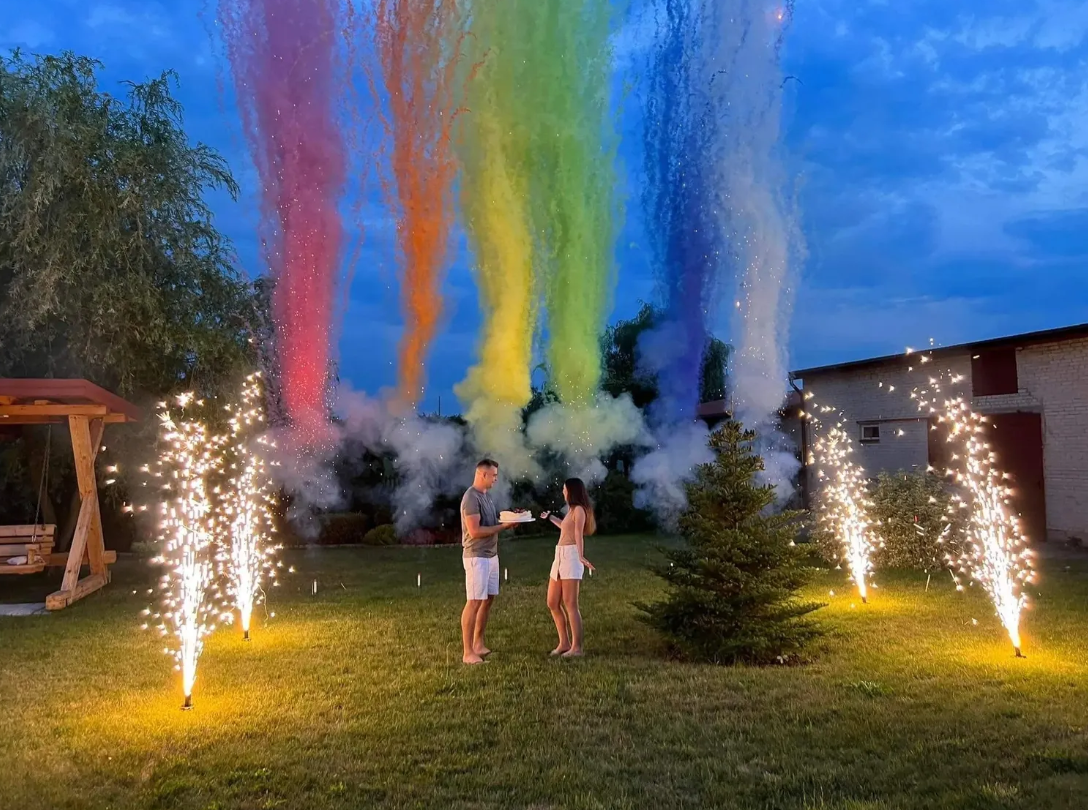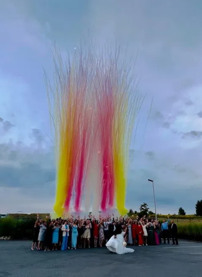 Kolorowe miny dymne to efektowna atrakcja, która zachwyci Twoich gości! W jednej chwili wystrzeliwują intensywne chmury barwnego dymu, tworząc spektakularne tło do zdjęć, filmów lub wejścia pary młodej. Idealne na wyjście z kościoła, rozpoczęcie zabawy lub jako punkt kulminacyjny weselnych niespodzianek. Efekt trwa kilka sekund i zapewnia niezapomniane wrażenia wizualne.